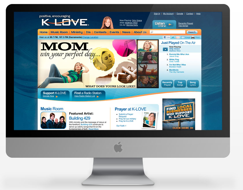 I had the privilege to work on the redesign of KLOVE.com. I created the main interface and look and feel for the site.